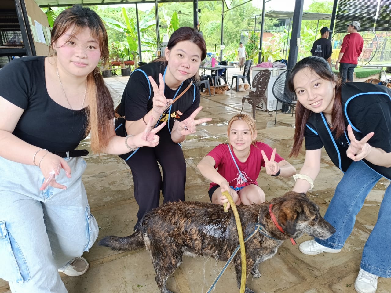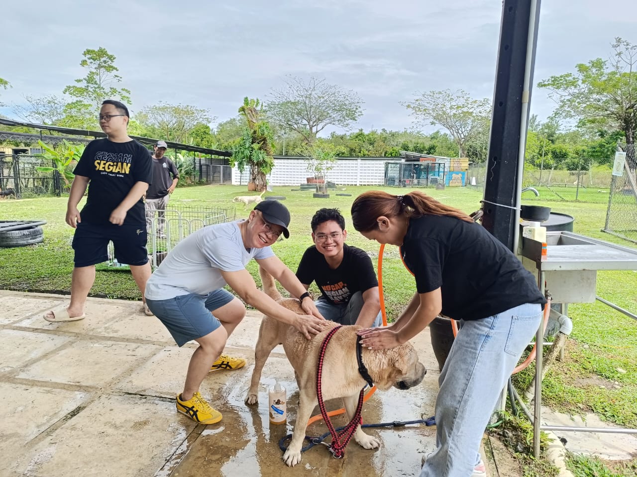 SEGi College Sarawak students donated 15 bags of rice, dog food, and toys to the shelter, providing essential supplies to support the well-being of the dogs. Beyond donations, the students rolled up their sleeves to clean the facilities and engaged directly with the animals by walking, bathing, and playing with them in the pool. These hands-on contributions not only improved the shelter environment but also gave the animals meaningful interaction, which is proven to reduce stress and improve their social behaviour.
