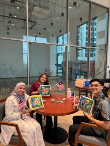 Throughout the day, students expressed their love for the country through creative activities. Batik painting sessions turned blank canvases into vibrant artwork inspired by local motifs and landscapes, while a traditional attire showcase allowed participants to walk with pride in outfits that reflected their heritage. Live performances and a cosy mini food bazaar added to the festive mood, with music, food and art blending into one warm and welcoming campus experience.